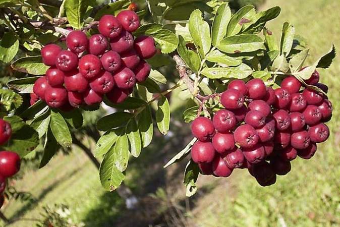 Сочная мякоть ягод лишена терпкости, сладкая рябина. Плодоносит дерево через 5 лет после посадки, цветет в конце весны либо в начале лета, ягоды созревают в середине осени, урожайность у растения достаточно высокая.