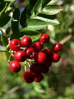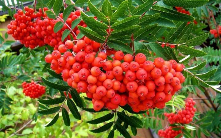 Рябина Вкусная. Плодовое дерево с яркими красными ягодами, которые могут оставаться на ветках с лета до поздней осени и даже всю зиму до весны. Плоды рябины содержат много кислот: лимонную, яблочную, сорбиновую, винную и янтарную. Помимо кислот в плодах рябины есть до 5% сахара, каротин, горькие и дубильные вещества, аскорбиновая кислота.