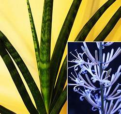 Крупная сансевиерия, обильно дает детки. Часто цветет в домашних условиях белыми ароматными цветками. Совершенно неприхотливый сорт.