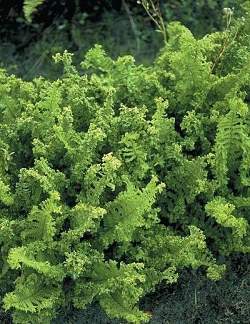 Щитовник мужской Cristata (Кристата). Сорт отличается сильно сближенными долями листа и небольшой высотой. Лист прямостоячий, изогнутый. Кончики боковых перьев листа разделены и образуют "пальчики". Полувечнозеленый.