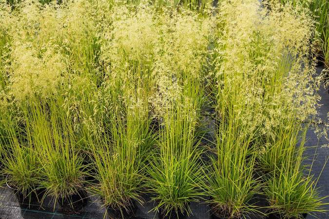Щучка дернистая Bronzeschleier (Бронзешлеер). Используется как акцент, солитер на газоне, великолепна в массе, когда формирует огромные широкие облака из цветков, изменяющих свой цвет в зависимости от сезона. Размер куста 1 х 0,5 м, соцветия раскидистые. Цветение начинается с серебристо-бронзового цвета. Осенью вся золотая. Нарастает достаточно медленно. Великолепная кочка для использования в регулярном саду.