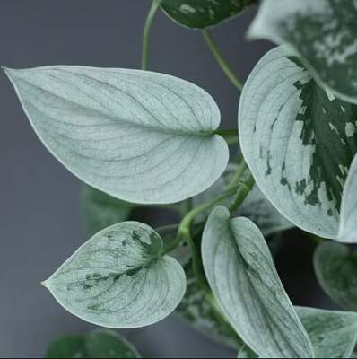 Silvery Anne (Силвери Энн). Невероятно привлекательная лиана с серо-зелеными листьями, покрытыми серебристым напылением. Текстура листьев приятная, бархатистая. Часть листьев словно забрызгана серебряной краской, а отдельные листья полностью дымчато-голубовато-зеленые. Можно выращивать на опоре или пускать каскадом. Благородный и необычный вид растения всегда привлекает внимание.