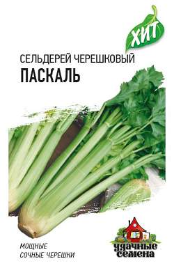 Сельдерей черешковый Паскаль. Среднеспелый (150 дней от всходов до технической спелости) сорт. Черешки темно-зеленые, длиной 20-25 см. Рекомендован для употребления в свежем виде, консервирования и в качестве специи в различные блюда. Урожайность 3,0-