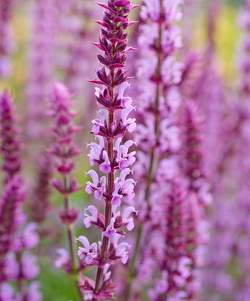 Шалфей дубравный Amethyst (Аметист). Выведенный П. Удольфом сорт шалфея "Аметист" в июне-июле — это множество ярких розово-фиолетовых шпилей! Куст высотой около полуметра, плотный, свечи соцветий стоят густо, ровно, не поникают, куст не разваливается, сохраняя аккуратную форму и после цветения.