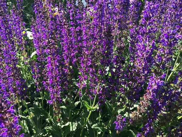 Шалфей дубравный Blue Queen (Блу Квин). Колосовидные соцветия с пурпурно-фиолетовыми цветками. Высота 40-60 см. Пряно-ароматическое растение. Цветет с конца июня до начала сентября. Светолюбив. Неприхотлив. Зимостоек.