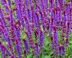 Шалфей Negrito (Негрито). Новинка. Цветки ярко-фиолетовые с темно-вишневыми верхушками, собраны в колосовидные соцветия. Сорт смотрится выигрышно и необычно благодаря контрасту цвета бутонов и распустившихся цветков, а также плотному кусту. Цветет в июне-августе. Высота растения до 40 см. Нижние листья крупные, слегка морщинистые, с приятным терпким ароматом.