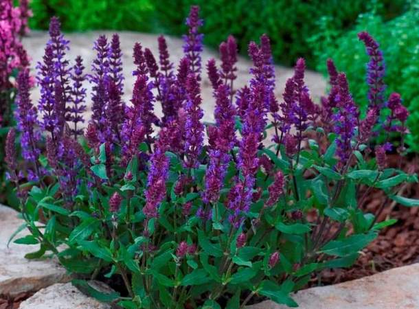 Шалфей New Dimension Blue (Нью Дименшен Блу). Компактный сорт, подходящий для выращивания в рокариях. Высота 25 см. Красиво смотрится в бордюрах и на передних планах цветников.