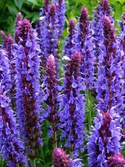 Шалфей Sensation Deep Blue (Сенсейшен Дип Блю) Прямостоящий многолетник с серо-зелеными, морщинистыми листьями. Цветки многочисленные, плотные, собранные в прямостоящий колосок. Как и любой шалфей — прекрасный заполняющий партнер в розарии, можно чудесно использовать его вместо плохо зимующей у нас лаванды. Шалфей также неотъемлемый компонент природных и луговых садов.