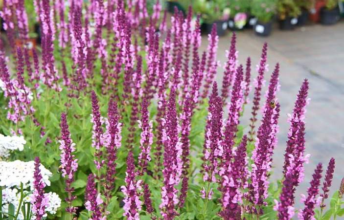 Шалфей Sensation Rose (Сенсейшн Роуз). Цветки розовые, чашелистики пурпурные — красивый контраст. Листья серо-зелёные ароматные. Цветёт этот шалфей в июне-августе, кустик компактный, высотой до 45 см. Разрастается на 30 см. Зимостоек.