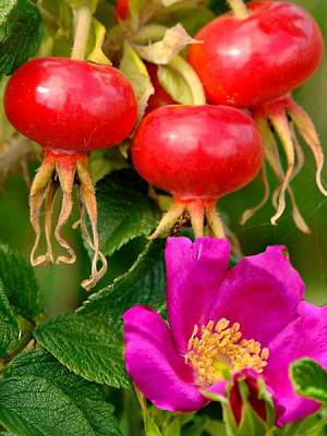 Шиповник Юбилейный. Практически полностью лишен способности давать корневые отпрыски. Плоды демонстрируют абсолютно сухой отрыв, что делает сбор, хранение и переработку ягод максимально удобной и быстрой.