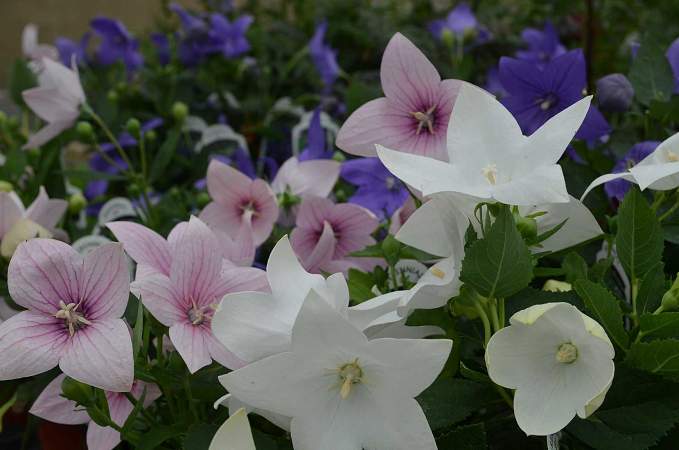 Ширококолокольчик (платикодон) Микс сортов. Растения высотой до 30 см. Цветки крупные (около 7,5 см). Цветет непрерывно весь сезон.