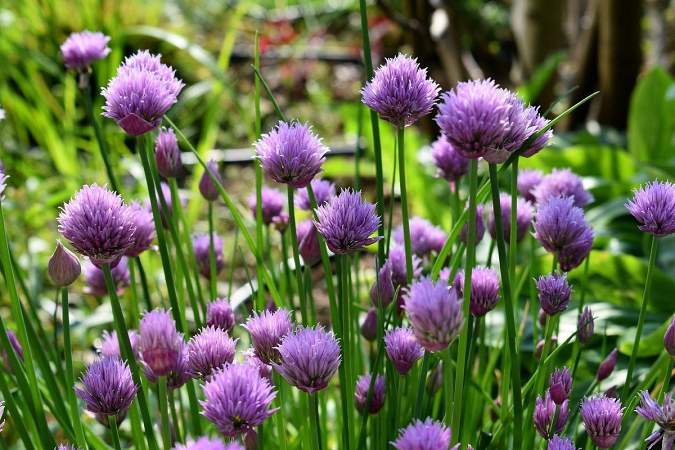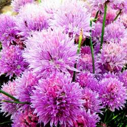 Шнитт-лук. Цветет рано, очень пышно и продолжительно. Соцветия — розовато-сиреневые шарики. Прекрасно сочетается с ранними лилейниками и другими многолетниками. Красив в бордюрах. Очень неприхотлив.
