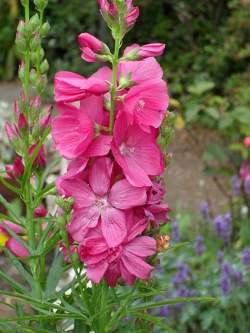 Сидальцею не стоит сажать по одной. Она ярко и оригинально смотрится в массивах. Впрочем, получить свой посадочный материал несложно, поскольку в середине лета сидальцея дает самосев. Очень хороша в цветниках стиля кантри.
