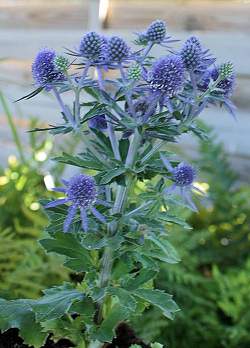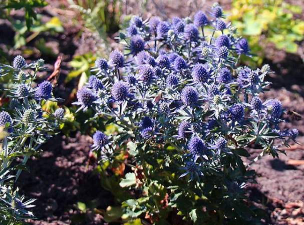Синеголовник плосколистный Blauer Zwerg (Блауэ Цверг). Карликовый сорт, что особенно ценно. Может украсить даже альпинарий или рокарий. Высота 25-30 см. Неприхотлив, легко сеется, быстро образует полянки. Отлично сочетается с карликовыми формами пупавки красильной и солидаго, невысокими рудбекиями.