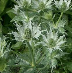 Синеголовник плосколистный Glitter White (Глиттер Вайт). Высота до 100 см. Неприхотливый сорт с белесо-зеленой окраской. Легко сеется. Отлично растет на солнце на дренированных почвах. Хорош с эхинацеями, тысячелистниками, степными колокольчиками.