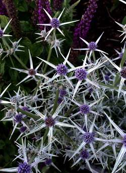 Синеголовник разнолистный. Растение для южных регионов, но может размножаться в Средней полосе самосевом. Вечнозеленый вид. Очень декоративен: мелкие синие головки торчат из белой обертки, имеющей форму звезды. Культивируют как все синеголовники, которые являются чрезвычайно неприхотливыми растениями, легко сеются. Им подходят любые почвы. Растут на солнце.