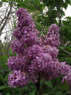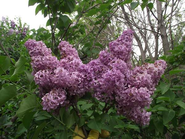 Сирень Академик Курчатов. Соцветия объемные, но легкие и сквозистые. Бутоны ярко-темно-лиловые. Цветки простые, очень крупные, на длинных лилово-фиолетовых трубочках. Лепестки удлиненные, темно-лиловые со светлой каймой, закручены назад, снизу светло-розовые. Цветение в поздние сроки.