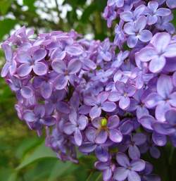 Сирень обыкновенная Amethyst (Аметист). Бутоны серебристо-лиловые, цветки синевато-лиловые с аметистовым оттенком, до 2,5 см в диаметре, душистые, в крупных соцветиях до 25-30 см длиной. Кустарник с шаровидной раскидистой плотной кроной. Высота взрослого растения 2,5-3,0 м, при таком же диаметре.