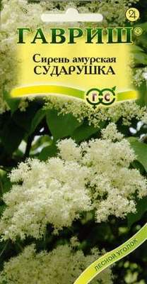 Сирень амурская Сударушка 0,1 г Н10. Крупный многоствольный кустарник с раскидистой густой кроной, до 10 м высотой. Кора старых стволов темно-серая, иногда темно-бурая, с частыми белыми чечевичками. Молодые побеги красно-бурые, напоминающие побеги вишни. Листья 5-11 см длиной, при распускании зеленовато-пурпуровые, летом темно-зеленые, с более светлой нижней стороной, осенью окрашиваются в оранжево-желтые или пурпуровые тона. Цветки мелкие, белые или слегка кремоватые, очень ароматные, с запахом меда. Расположены на коротких цветоножках, собраны в крупные, широкие, метельчатые соцветия, до 25 см длиной. Цветение обильное, продолжается около 20 дней.
