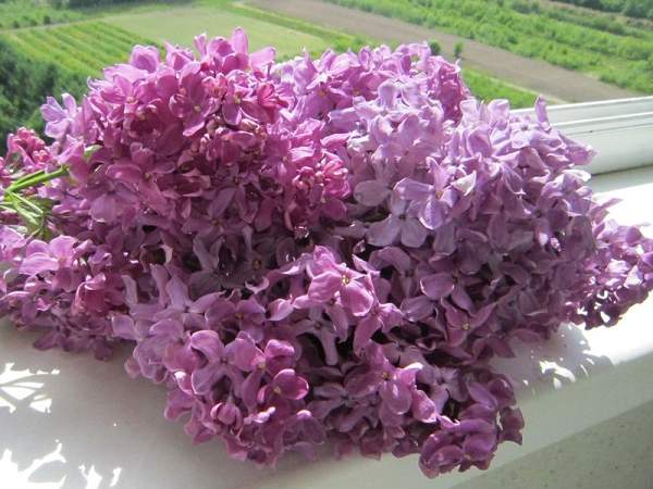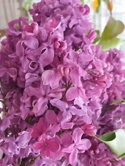 Сирень День Победы. Куст среднего размера, высотой 1,7-1,9 м, раскидистый, средней густоты. Листья средние, заостренно-яйцевидной формы, зеленые, матовые, гладкие. Соцветия крупные, средней плотности, конусовидной формы. Бутоны тёмно-пурпурные.