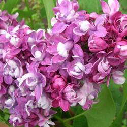 Сирень Etoile de Mai (Этуаль де Мэ). Цветки диаметром 1,5-1,8 см, махровые. Внутренняя сторона лепестков пурпурная, внешняя — более светлая. Из-за такого контраста соцветия смотрятся очень эффектно. Аромат насыщенный. Куст компактный.