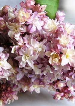 Цветки махровые, со слегка раздвинутыми венчиками, крупные, диаметром 2,0-2,5 см. Лепестки заострённые, асимметричные, дымчато-розового, голубого, лилового и желтого цвета. Цветки раскрываются медленно и неодновременно, поэтому контраст бутонов и лепестков остаётся ярким практически до конца цветения. В самом конце цветки выгорают до кремовых. Аромат сильный.