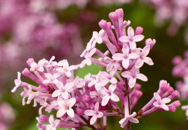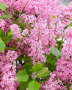 Сирень Flowerfesta pink (Флауэрфест Пинк). Низкорослая сирень. Куст компактный, густой, высотой 125 см и шириной 100 см. Цветки лилово-розовые, трубчатые. Метёлки крупнее, чем у других сортов сирени Мейера. Аромат прекрасный, сладкий.