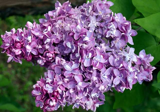 Сирень Изобилие. Крупные цветки состоят из трех венчиков, лепестки нижнего венчика несколько темнее лепестков двух внутренних рядов. Окраска цветков при распускании пурпурно-лиловая, позже лиловато-розовая. Соцветия очень пышные, плотные. Кусты среднего размера, аккуратные. Используется как красивоцветущее растение в различных видах древесно-кустарниковых групп, одиночных посадках, в срезке.