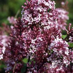 Сирень Josee (Джози). Гибрид сирени Мейера, патула и микрфила, обладает способностью повторно цвести осенью. Куст густой и компактный, высотой всего 180 см. Цветет с самого раннего возраста. Цветки мелкие трубчатые розово-лавандовые с очень приятным ароматом, в соцветиях длиной 8-10 см. Цветёт обильно в мае, осенью слабо. Идеально подходит в качестве живой изгороди, для контейнеров и срезки. Зона 2 (до -40°С).