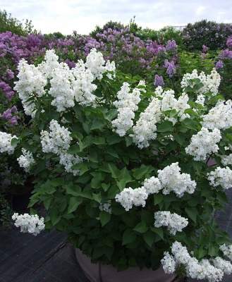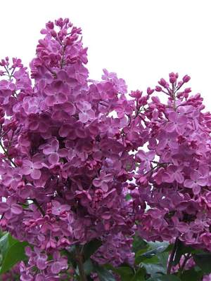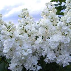 Сирень Катенька. Бутоны очень крупные, нежно-кремовые. Цветки крупные, снежно-белые, махровые и густомахровые, лепестки овальные, в начале роспуска с приподнятыми краями и характерным "клювиком", затем распрямляются и имеют острые кончики.