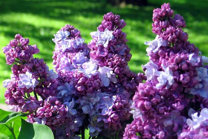 Сирень Katherine Havemeyer (Катерина Хавемейер). Высокодекоративный сорт с крупными махровыми цветками с сильным ароматом. Соцветия крупные, широкие и тяжелые. Куст раскидистый, достигает 5 м высоты. Используется в солитерных посадках на газоне, в группах, опушках, аллеях.
