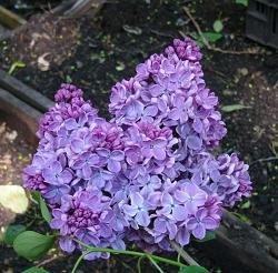 Сирень Космос. Кусты высокие, пряморослые, с прочными длинными побегами. Соцветия из одной-двух, реже трех-четырех пар крупных (25х10 см), пирамидальных, очень плотных прямостоячих метелок, устойчивых к продолжительным дождям и ветру. Бутоны темно-фиолетовые.