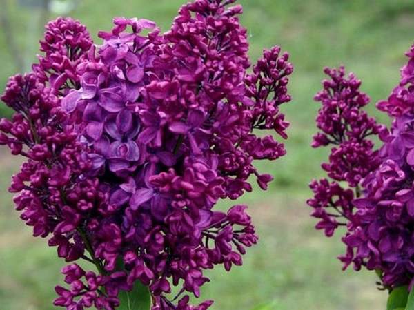 Сирень Кремлевские Куранты. Эта сирень необычайно декоративна в стадии полуроспуска: яркие карминно-фиолетовые бутоны соседствуют с густо-лиловыми крупными цветками, подсвеченными красными тенями. У распустившихся цветков лепестки винтообразно изогнуты. Соцветия крупные, немного рыхлые, слегка поникающие. Кусты высокие, прямые. Цветет обильно в средние сроки.
