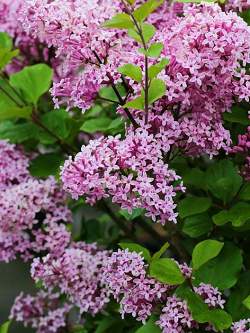 Сирень Lillifee (Лилифи). Куст высотой 100-130 см и шириной 150 см, хорошо разветвлённый, густой. Листья зелёные, длиной 2-4 см, осенью — оранжево-красные. Бутоны тёмно-фиолетовые. Цветки лилово-фиолетовые, в широких соцветиях длиной 5-10 см. Аромат лёгкий. Цветение очень обильное, в мае.