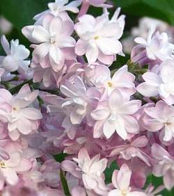 Сирень Луч Востока. Редкий сорт. Окраска привлекательная — бутоны шаровидные, пурпурно-фиолетовые, цветки сначала светло-лиловые, затем чисто-белые с голубым отливом. Цветки махровые. Соцветия узкоконические, аккуратные, прозрачные. Куст пышный, среднерослый, крона округлая. Полностью зимостойка. Выносит временное подтопление, что для сирени серьезный плюс. Светолюбива.