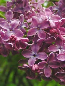 Сирень Маршал Рокоссовский. Соцветия изящные, стройные, плотные, узкопирамидальной формы. Бутоны тёмно-лиловые с зеленоватым оттенком. Цветки махровые, среднего размера, асимметричные. Лепестки узкие, внутренний венчик с серебристым отливом.