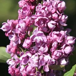 Сирень Mme Nadja N (Мадам Надя Н). Исключительной красоты махровая сирень с великолепным ароматом, зацветающая одной из первых — почти на три недели раньше остальных. В бутонах она тёмно-фиолетовая, расцветая, светлеет. Хороша в срезке.