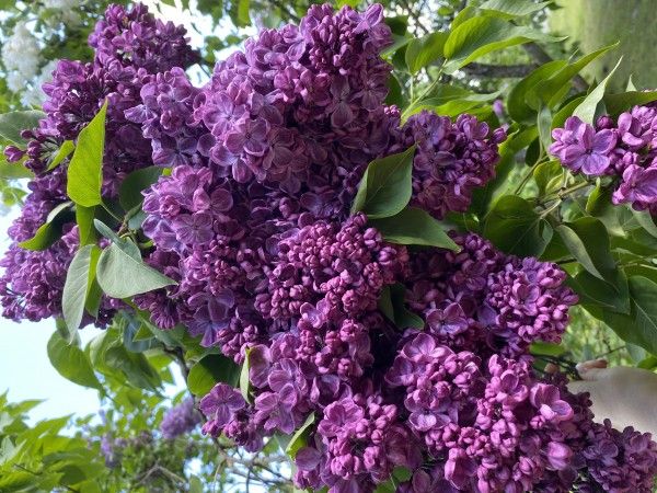 Сирень Mood Indigo (Муд Индиго). Куст до 300 см в высоту, не слишком густой. Листья матовые, волнистые, темно-зеленые, молодые с антоциановым оттенков. Цветет очень эффектно. Один из красивейших сортов фиолетовой группы. Цветок пурпурно-красный с нежным бирюзово-голубым свечением изнутри. Соцветия довольно крупные, рыхлые и ажурные.
