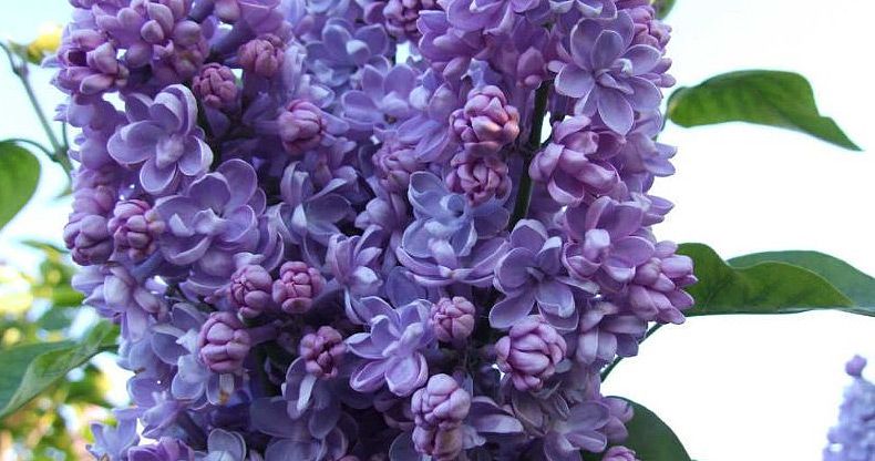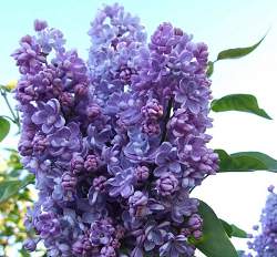 Сирень Небесные Цветы. Автор: Котов В.В. Бутоны крупные, нежно-лиловые. Цветки крупные, махровые, небесно-голубые. Лепестки овальные с приподнятыми краями. Соцветия крупные, плотные, многовершинные, вертикально направленные. Куст среднерослый, широкий. Зацветает в средние сроки, цветёт обильно. Цветом неба щедро наполнено цветение этого сорта.
