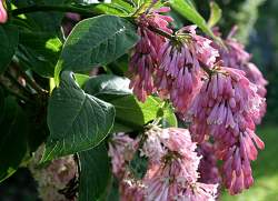 Сирень пониклая (рефлекса). Кустарник, который очень редко встречается в садах. Соцветия длинные, до 30 см. Бутоны ярко-красные, цветки розовые. Красивый контраст между раскрытыми цветками и бутонами. Кустарник 3-4 м высотой с прямыми расходящимися густыми ветвями. Кора темно-серая.