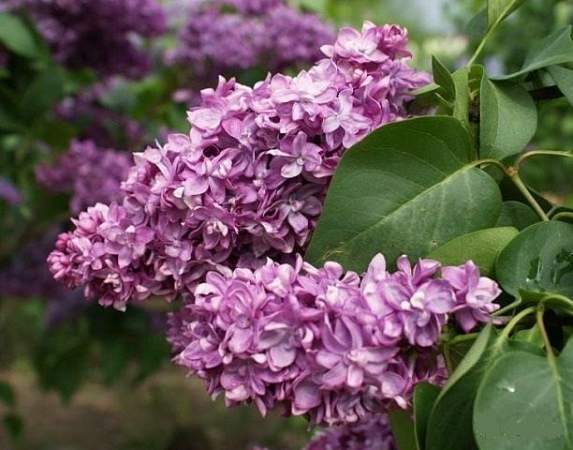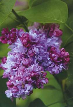 Сирень Русская Песня. Цветки махровые, до 3 см в диаметре, фиолетовые. Аромат очень сильный. Соцветия пирамидальные, плотные. Устойчива к выгоранию. Срок цветения средне-поздний. Высота до 3 м.