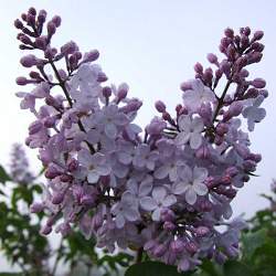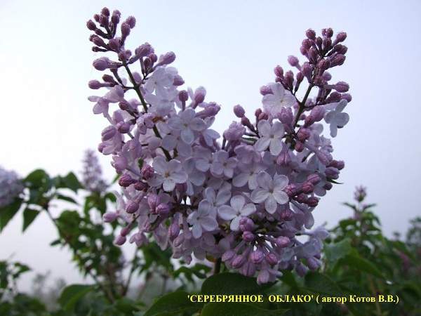Сирень Серебряное Облако. Бутоны крупные, нежно-лиловые. Цветки крупного и среднего размера, простые, в начале цветения нежно-серебристо-голубые, затем серебристо-белые. Лепестки округлые, с нижней стороны нежно-лиловые, много пятилепестковых цветочков.