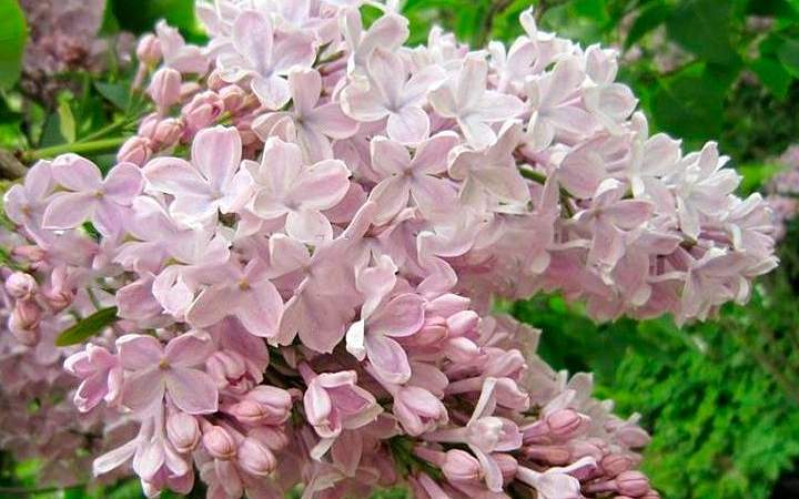 Сирень обыкновенная Тишина. Бутоны пастельных тонов с лёгким кофейным оттенком. Цветки простые, очень крупные (3,5-4,0 см в диаметре), с редкой пепельно-розовой окраской. Позже она светлеет и появляется жемчужный оттенок. Соцветия пышные, крупные, конусовидные, слегка поникающие. Куст высотой 200-300 см, слабораскидистый. Срок цветения средний.