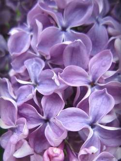 Сирень Валаам. Соцветия прямостоячие. Бутоны темно-лилово-фиолетовые. Цветки простые, темно-лиловые с голубым оттенком. Наружная сторона лепестков более теплая, розовая.