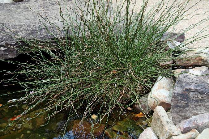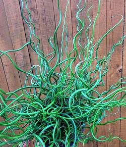 Ситник развесистый Spiralis (Спиралис). Растения семейства Ситниковых с цилиндрическими зелёными листьями. Как правило, распространены в северных широтах на влажных болотистых почвах. Растение с зелёными цилиндрическими листьями длиной до 50 см. Однако, длина не чувствуется, так как всё растение выглядит клубком сильно извитых и запутанных в клубок листьев. Зимует хорошо.
