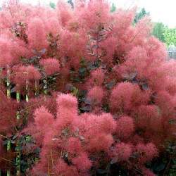 Скумпия Foliis Purpureis (Фолис Пурпуриш). Сорт декоративен благодаря розово-красным соцветиям и пурпурной листве. При недостаточном освещении листва теряет окраску, становясь зеленой. В условиях Подмосковья молодой прирост может обмерзать по уровень снега. Зона 5.