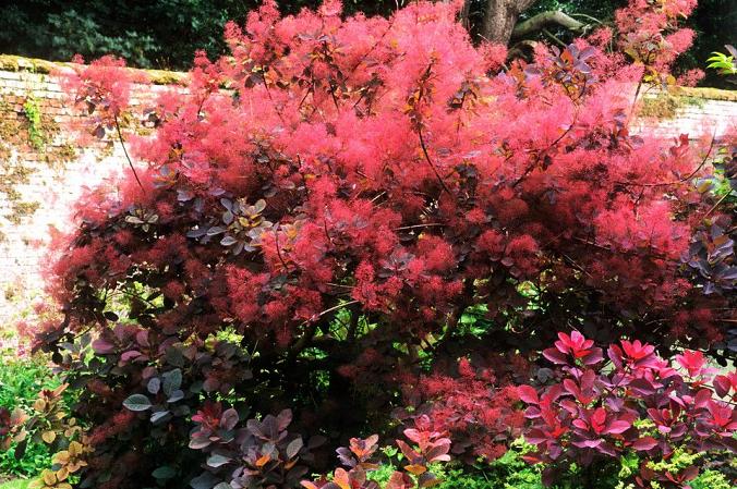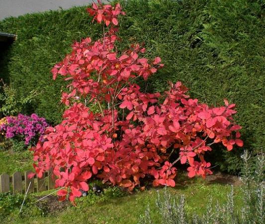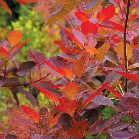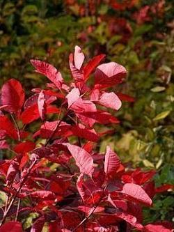 Скумпия Grace (Грейс). Растение сильноветвистое, с высотой надземной части до 2-3 м, имеет крупную, блестящую листву и прямостоячие стебли. Вырастает раскидистым пышным кустом. Окрашивание листвы варьируется от пурпурного до темно-зеленого окрашивания с голубым оттенком. В осенний период листья приобретают пурпурный, розовый, красный, оранжевый и желтый цвет. В начале лета появляется метельчатое соцветие. Цветки пурпурно-розового окрашивания, собранные в крупные соцветия.