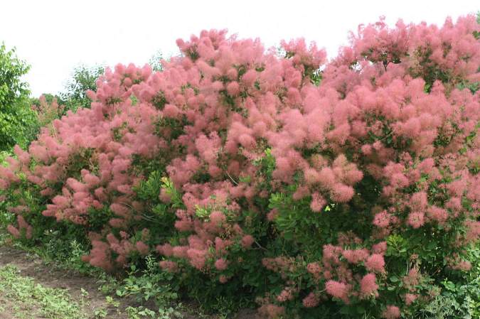 Листья овальные, кожистые, летом зеленые. В июне-июле восхитительно цветет — соцветия воздушные, "пушистые", светло-розового цвета. Осенью листья окрашиваются в багряные тона.