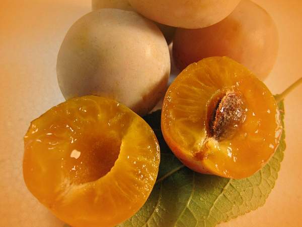 Слива Белая Медовая. Культура сильнорослая с раскидистой кроной. Для выращивания желтой сливы требуется большая площадь. Крона разрастается в диаметре до 5 м. Однако дерево не испытывает загущенности. Веток у желтой сливы вырастает в меру, ничего нет лишнего.
