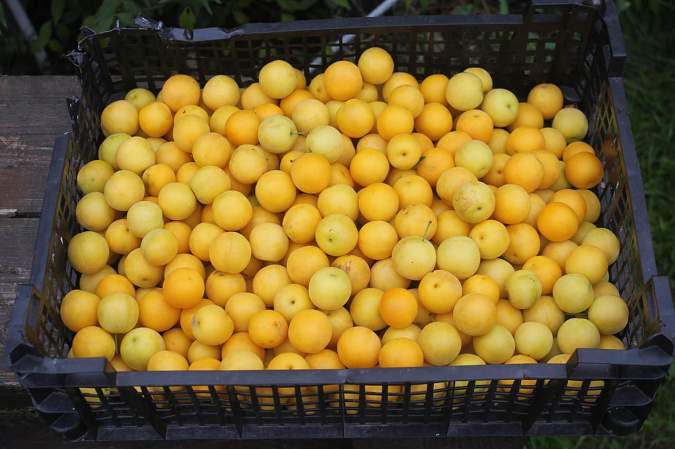 Слива русская (Алыча) Подарок Санкт-Петербургу. Раннего срока созревания. Дерево среднерослое с раскидистой кроной средней густоты. В плодоношение вступает на 4-й год. Плоды удлиненно-яйцевидные, желтовато-оранжевые, массой 10 г. Мякоть желтая, сочная, тонковолокнистая, кисло-сладкого вкуса. Дегустационная оценка 4,4 балла. Сорт универсального назначения, с высокой транспортабельностью плодов.